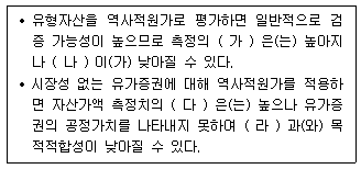 회계정보의 질적특성은 서로 상충될 수 있다. (가), (나), (다), (라)에 들어갈 질적 특성으로 옳은 것은? (순서대로 (가), (나), (다), (라))