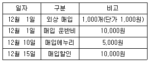 다음은 (주)한공의 상품 취득 관련 자료이다. 12월 15일 현재 상품의 취득원가를 계산하면 얼마인가?