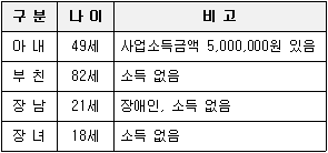 거주자 김한공 씨(53세)와 생계를 같이하는 동거가족의 현황은 다음과 같다. 이 자료를 이용하여 2021년도 종합소득과세표준 계산 시 공제되는 인적공제액을 계산하면 얼마인가?