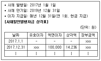 다음은 (주)한공의 사채 관련 자료이다. 2017년 12월 31일 사채이자에 대한 회계처리로 옳은 것은?