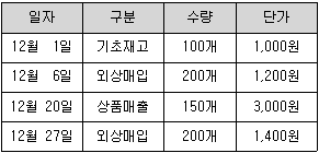 다음은 (주)한공의 12월 중 상품 매매 자료이다. 재고자산의 평가방법을 총평균법으로 적용한 경우 매출원가는 얼마인가?