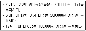 다음은 (주)한공의 회계 처리 오류사항이다. 오류사항 반영 전 당기순이익이 20,000,000원일 경우, 오류사항을 반영한 후의 2020년 당기순이익은 얼마인가?