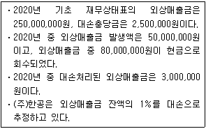 다음은 (주)한공의 외상매출금 및 대손충당금 관련 자료이다. 기말 결산분개로 옳은 것은?