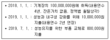 다음은 (주)한공의 기계장치 관련 자료이다. 2019년 결산 시 계상할 감가상각비는 얼마인가?