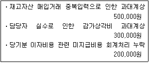 (주)한공은 결산 마감 전 다음 사항을 발견하였다. 수정 전 당기순이익이 1,000,000원일 경우 수정 후 당기순이익은 얼마인가?