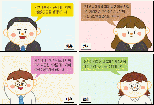 다음 결산 관련 대화 중 옳지 않은 설명을 하고 있는 사람은?