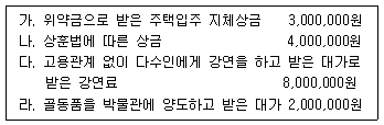 다음 자료는 거주자 김한공 씨의 2019년 귀속 소득내역이다. 김한공 씨의 종합과세되는 기타소득금액은 얼마인가? (단, 실제 소요된 필요경비는 확인되지 않는 것으로 가정한다.)