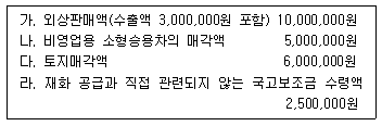 다음은 (주)한공의 2019년 제2기 확정신고기간(2019.10.1.~2019.12.31.)의 자료이다. 이를 토대로 부가가치세 과세표준을 계산하면 얼마인가?(단, 주어진 자료의 금액은 부가가치세가 포함되어 있지 않은 금액이며, 세금계산서 등 필요한 증빙서류는 적법하게 발급하였거나 수령하였다.)