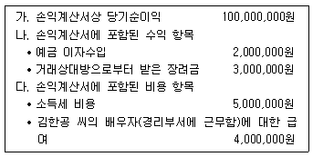제조업을 영위하는 개인사업자 김한공 씨의 2019년도 사업소득금액을 계산하면?