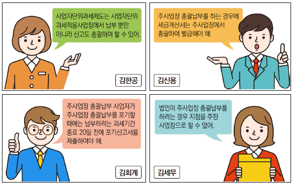 다음 중 부가가치세법상 주사업장 총괄납부와 사업자단위과세에 대해 바르게 설명하는 사람은?