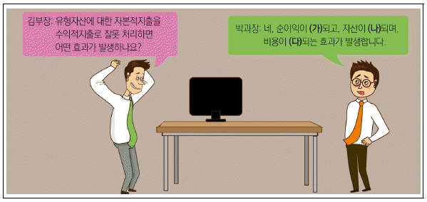 다음은 김부장과 박과장의 대화이다. (가), (나), (다)의 내용으로 옳은 것은? (순서대로 (가), (나), (다))