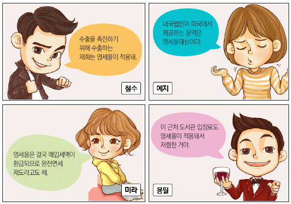 다음 중 부가가치세법상 영세율에 대하여 잘못 알고 있는 사람은?