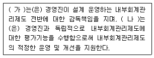 다음은 내부회계관리제도 운영 책임에 대한 설명이다. (가)와 (나)에 들어갈 내용으로 옳은 것은? (순서대로 (가), (나))