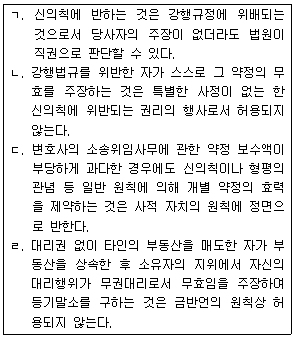 신의성실의 원칙(이하 '신의칙')에 관한 설명으로 옳은 것을 모두 고른 것은? (다툼이 있으면 판례에 따름)