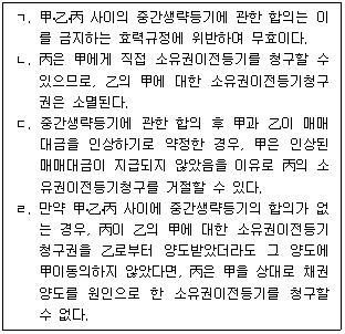 甲 소유 X토지에 관하여 甲과 乙, 乙과 丙 사이에 순차적으로 매매계약이 체결되고, 甲ㆍ乙ㆍ丙 사이에 중간생략등기의 합의가 있었다. 이에 관한 설명으로 옳은 것을 모두 고른 것은? (다툼이 있으면 판례에 따름)