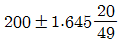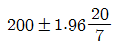 어느 공장에서 생산되는 축구공의 탄력을 조사하기 위해 랜덤하게 추출한 49개의 공을 조사한 결과 평균이 200mm 표준편차가 20mm였다. 이 공장에서 생산되는 축구공의 탄력의 평균에 대한 95% 신뢰구간을 추정하면? (단, P(Z>1.96)=0.025), P(Z>1.645)=0.05)