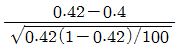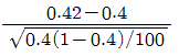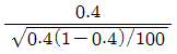이었다. 귀무가설 H0:p=0.4 와 대립가설 H1:p>0.4 를 검정하기 위한 검정통계량은?