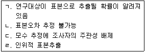 비확률 표본추출법과 비교한 확률 표본추출법의 특징을 모두 고른 것은?