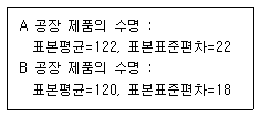 어느 회사에서는 두 공장 A와 B에서 제품을 생산하고 있다. 각 공장에서 8개와 10개의 제품을 임의로 추출하여 수명을 조사한 결과 다음의 결과를 얻었다.