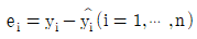 변수 x와 y에 대한 n개의 자료 (x1, y1),…,(xn, yn)에 대하여 단순회귀모형 y1=β0+β1xi+εi를 적합시키는 경우, 잔차