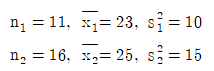 다음은 두 모집단 N(μ1, σ2), N(μ2, σ2)으로부터 서로 독립된 표본을 추출하여 얻은 결과이다.