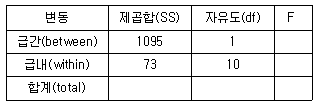 다음 분산분석표에 관한 설명으로 틀린 것은?