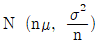 평균이 μ, 분산이 σ2인 모집단에서 크기 n의 임의표본을 반복추출하는 경우, n이 크면 중심극한정리에 의하여 표본합의 분포는 정규분포를 수렴한다. 이때 정규분포의 형태는?