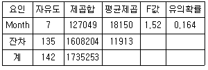 다음 분산분석표에 관한 설명으로 틀린 것은?