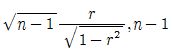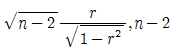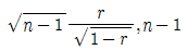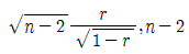 을 이용하여 귀무가설 H0:ρ=0을 검정하고자 한다. 이 때 사용되는 검정통계량과 그 자유도는?