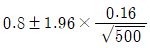 어느 지역의 청년취업률을 알아보기 위해 조사한 500명 중 400명이 취업을 한 것으로 나타냈다. 이 지역의 청년취업률에 대한 95% 신뢰구간은? (단, Z가 표준정규분포를 따르는 확률변수일 때, P(Z > 1.96)=0.025이다.)