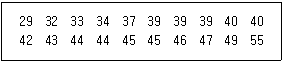 20개로 이루어진 자료를 순서대로 나열하면 다음과 같을 때, 중위수와 사분위 범위(interquartile range)의 값을 순서대로 나열한 것은?