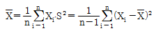 정규모집단 N(μ, σ2)로부터 취한 n의 표본 X1, X2, ㆍㆍㆍ, Xn에 근거한 표본평균과 표본분산을 각각