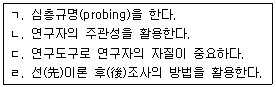 양적-질적 연구방법의 비교에서 질적 연구방법에 대한 옳은 설명을 모두 고른 것은?