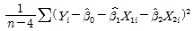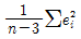 다음 중 중회귀모형에서 오차분석 σ2<의 추정량은? (단, ei는 잔차를 나타낸다.)