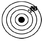 척도의 신뢰도와 타당도의 관계를 표적과 탄착에 비유한 다음 그림에 해당하는 척도의 특성은?