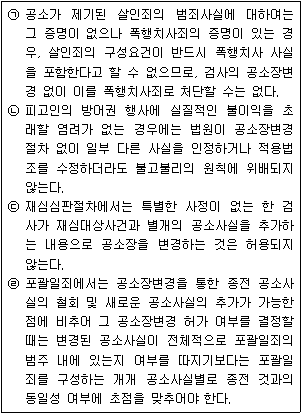 공소장변경에 대한 다음의 설명(㉠~㉣) 중 옳고 그름의 표시(O, X)가 바르게 된 것은? (다툼이 있는 경우 판례에 의함)