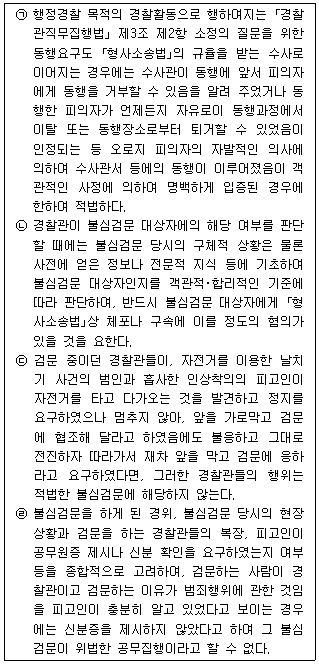 불심검문에 대한 설명이다. 아래 ㉠부터 ㉣까지의 설명 중 옳고 그름의 표시(O, X)가 바르게 된 것은?(다툼이 있는 경우 판례에 의함)