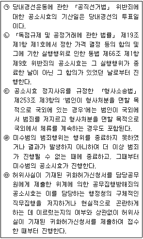 공소시효에 대한 다음 설명 중 적절하지 않은 것만을 고른 것은 모두 몇 개인가? (다툼이 있는 경우 판례에 의함)