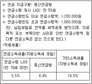 40세인 A씨의 우체국연금저축보험 2007 가입 현황이 <보기>와 같을 때 연금수령 1차년도 산출세액(지방소득세 포함)으로 옳은 것은?