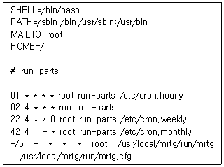 다음은 cron 데몬의 설정파일인 crontab 파일의 내용이다. 이 파일의 내용을 보면 마지막 라인에 ′*/5′ 라고 표현된 부분이 있는데 이것의 의미는?