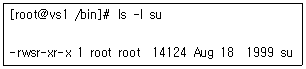 Linux에서 su 명령의 사용자 퍼미션을 확인한 결과 ′rws′ 이다. 아래와 같이 사용자 퍼미션에 ′s′ 라는 속성을 부여하기 위한 명령어는?