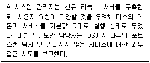 다음 지문과 관련하여 보안 정책에 가장 적합한 시스템 관리자의 조치는?