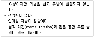 다음과 같은 신체적ㆍ심리적 문제를 나타내는 성염색체 이상은?