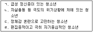 자기성장 집단상담에 적합하지 않은 청소년 내담자를 모두 고른 것은?