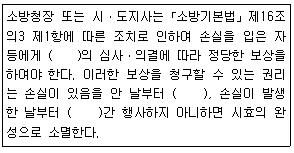 소방기본법령상 보상 제도에 관한 설명이다. ()에 들어갈 말을 순서대로 바르게 나열한 것은?