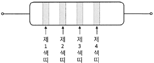 그림과 같은 저항기의 값이 4.7MΩ이고 허용오차가 ±10%일 때, 이 저항기의 섹띠(color code)를 바르게 나열한 것은?