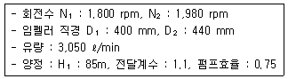 소방펌프 시운전 시 공급유량이 원활하지 않아 펌프 임펠러 교체로 회전수를 변경하였다. 이 때 소요 펌프동력 (KW)은 약 얼마인가?