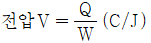 다음 용어 정의에 대한 공식과 단위 연결이 옳지 않은 것은? (단, w:일, Q:전하량, t:시간, ρ:고유저항, L:길이, S:단면적)