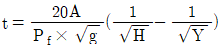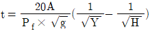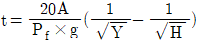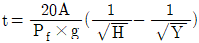 한클리(Hinkley)의 연기하강시간(t)에 관한 식으로 옳은 것은? (단, t는 연기의 하강시간(s), A는 바닥면적(m2), Pf는 화재둘레(m), g는 중력가속도(m/s2), H는 층고(m), Y는 청결층 높이(m) 이다.)