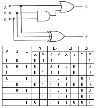 다음 무접점 논리회로의 출력을 표현한 진리표의 내용이 옳게 작성된 것은?